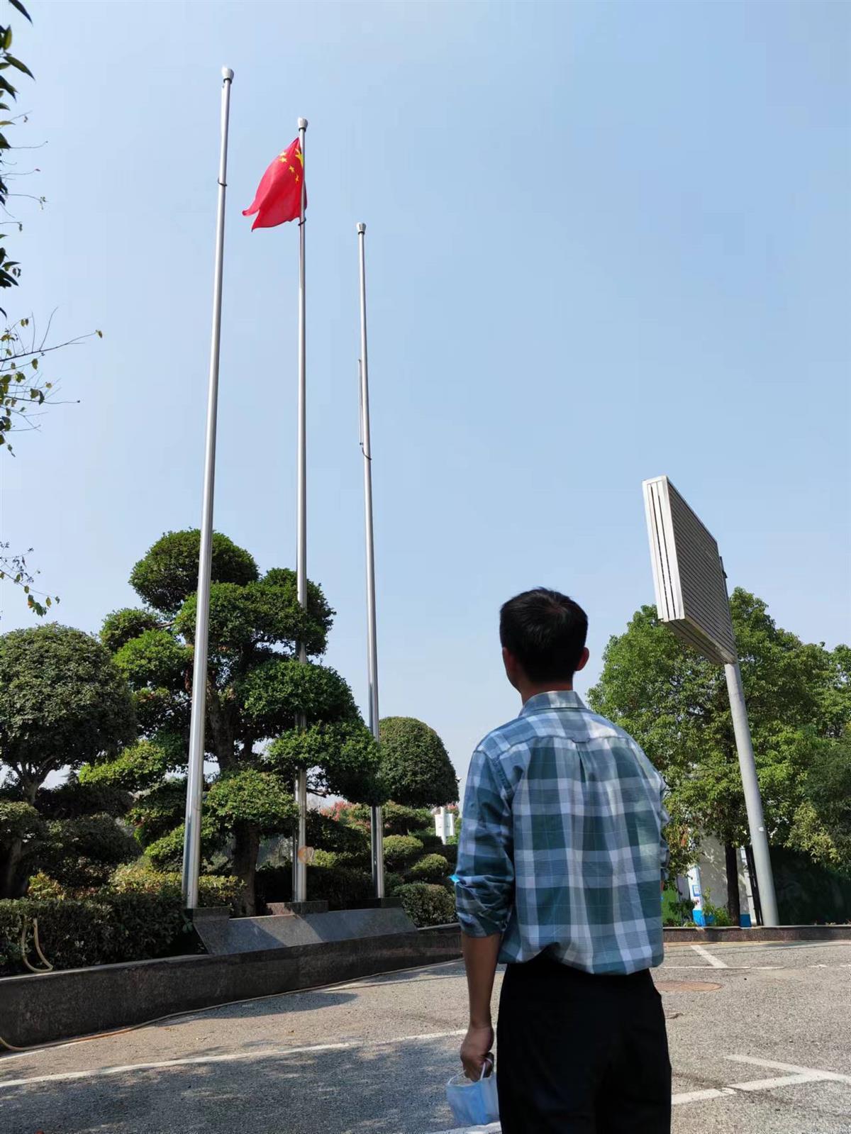 最后,张潮带领记者来到了附近的东光国际大厦。因为这个地方平时都有国旗飘扬,他经常来这观旗。站在飘舞的国旗下,45岁的张潮仰头久久地凝视着,他说:“我知道我做的事情其实不被很多人理解,但我下定决心这么做,是希望通过自己的行为,唤醒更多人爱护国旗的意识。我衷心祝福祖国越来越繁荣昌盛。”