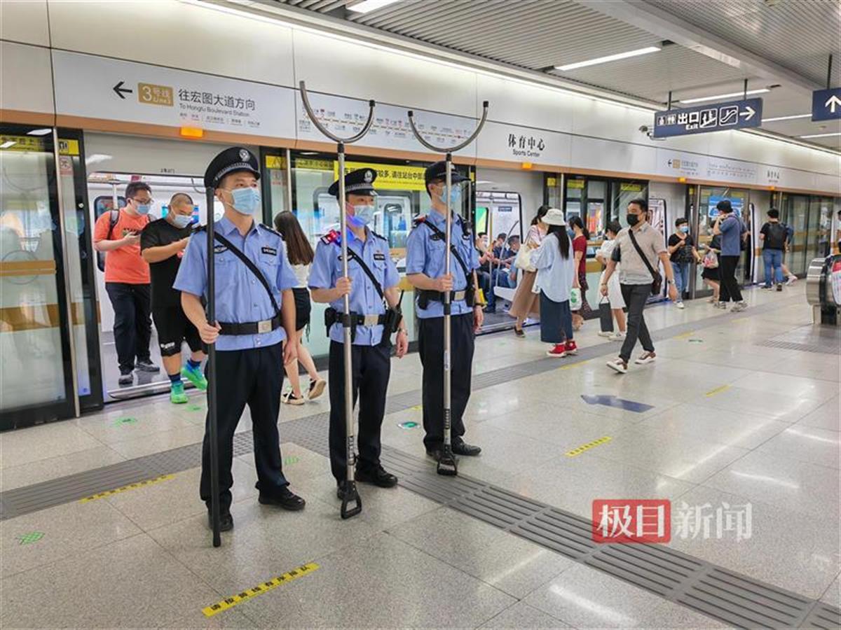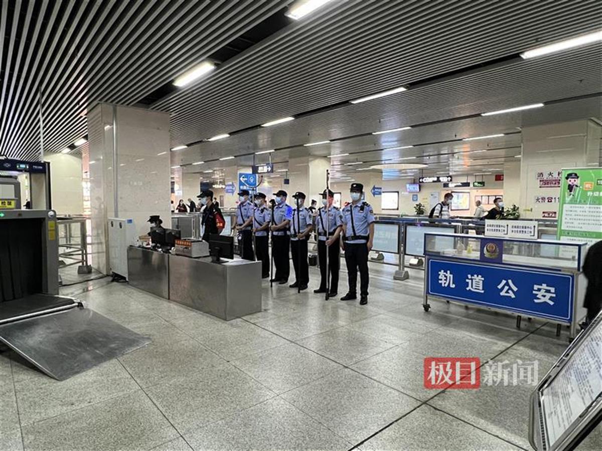 极目新闻记者获悉,武汉轨道警方加大警力部署,全网每天投入1300警力,除常态性站区民辅警值班外,还设置80多个巡逻防控单元及若干个快反机动组、警犬巡逻组、车厢巡控组、地上地下联勤联动点,强化显性用警,实现勤务全覆盖,防控无真空,加强客流疏导和管控。
