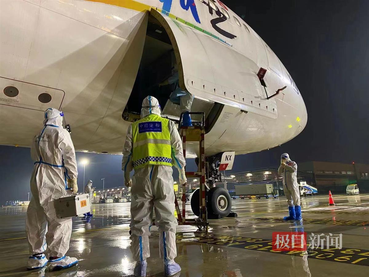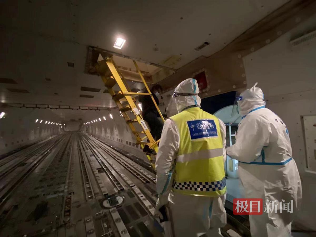10月2日,一架次韩国货机飞抵武汉天河机场,边检民警黄琛琛和两名同事快步上前,查验证照,检查货舱,整套边检手续办完,防护服内全身衣服已经汗透,“夏天那么热的天都熬过来了,已经习惯了。”
