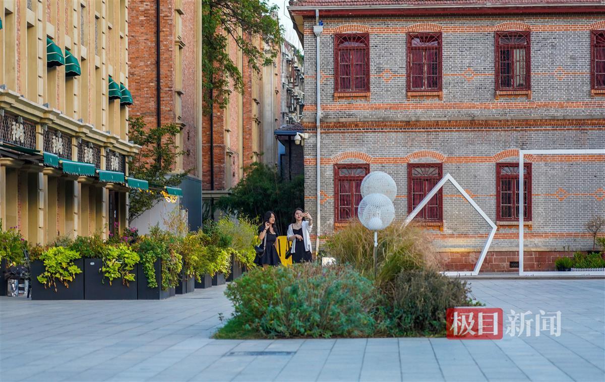10月3日,江城秋初,天空湛蓝,在汉口人气地标“平和坊”的小广场上,鲜花与古朴气息的老式建筑交织在一起,混搭出一种清新时髦感。有市民穿着婚纱、旗袍组团来打卡,有市民带上“长枪短炮”的专业设备来摄影采风……去年底,武汉市江岸区鄱阳街上拥有百年历史的“平和坊”上新,小广场变身为花团锦簇的“平和坊历史文化街区”。这是武汉市为建设“湿地花城”,而打造的第二个花漾街区。同时也迅速成为了市民的网红休闲之地,不少外地游客还专程赶来打卡。