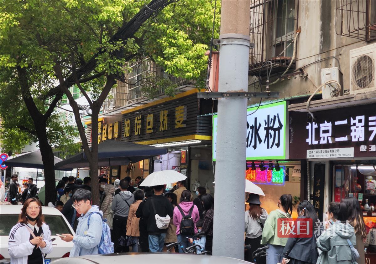 10月5日,在汉口水塔街,记者看到,不少小吃店门口,都有顾客在排队等候取餐。