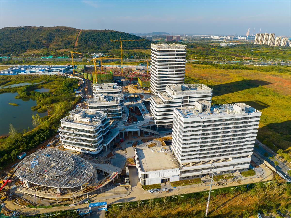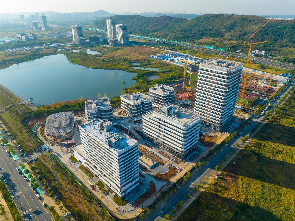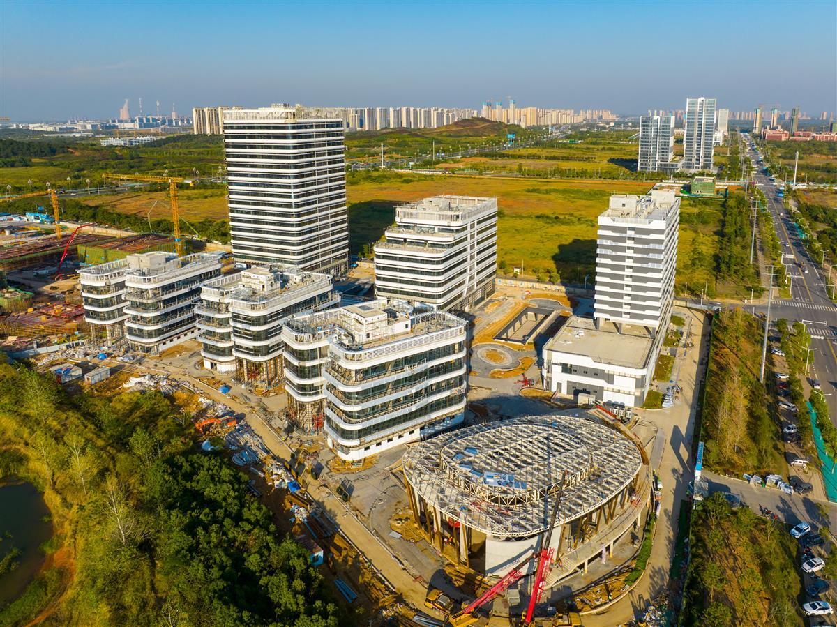 10月12日,俯瞰位于武汉东湖高新区的中国光谷·数字经济产业园。园区内的数座主体建筑已拔地而起。