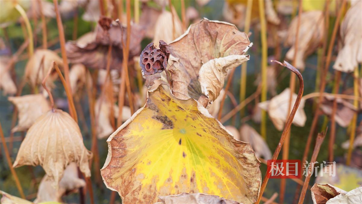 10月17日,武汉沙湖公园荷园,众荷芳华已褪,却有着沧桑风骨之美,吸引了不少市民游客特意来观赏、拍照,沙湖公园也特意给市民游客留着此景。