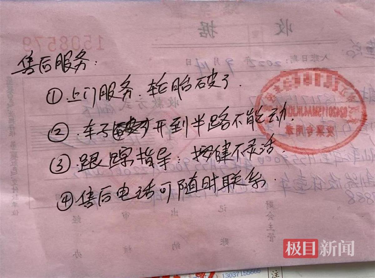 “购车时,销售人员跟我承诺,保证有任何质量问题都可以售后。”谢女士称,由于是熟人介绍,她没多想就决定付了钱,并配合进行车内安装与调试。可等再回到店里,她才发现,工作人员给她开具的票据有问题:自己明明支付的是1.6万元,却只有一张金额为9990元的发票;另有一张金额为1.6万元的收据,上面简单写了几句“服务承诺”,就代替了购车合同。