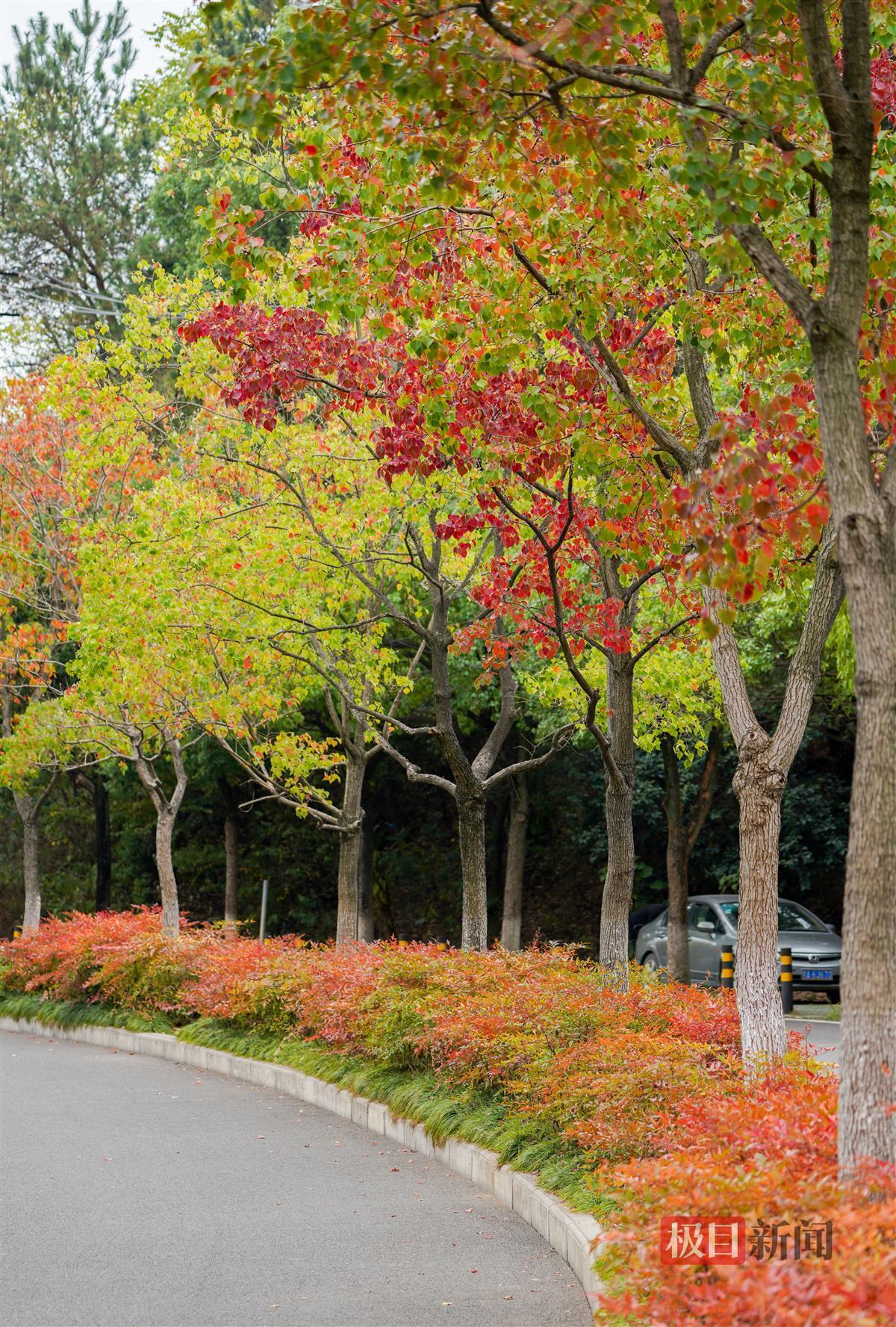10月25日,随着道路两旁的乌桕树慢慢变红,武汉东湖喻家湖路也迎来了一年中最美的季节。
