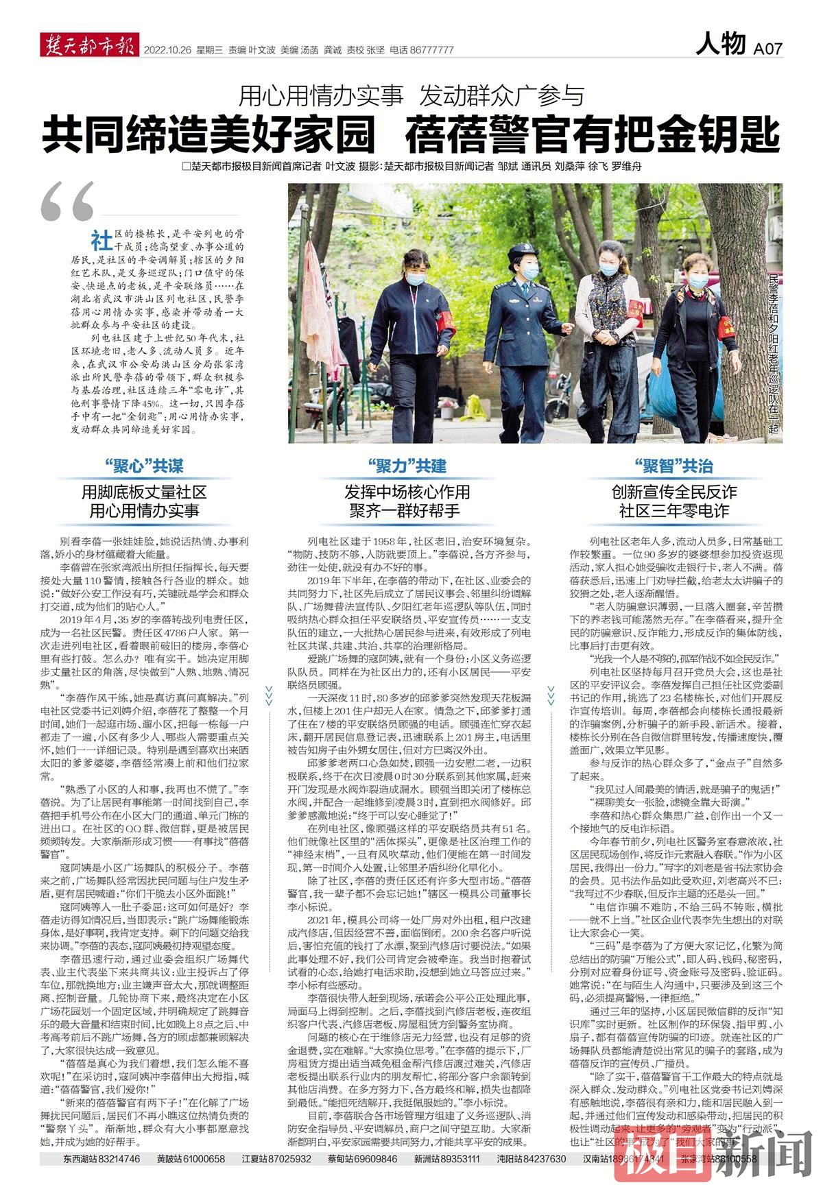 面对复杂的警务工作,李蓓渐渐悟出一套工作心得:“社区治安好不好,哪里有问题,基层群众最有发言权。只有依靠群众、发动群众,才能直达痛点、事半功倍。”