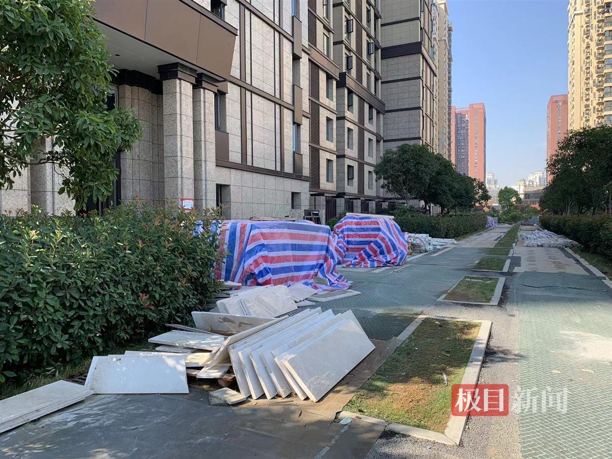 10月25日,极目新闻记者陪同业主代表来到星湖湾楼盘,由于疫情防控,无法进入项目现场。不过,根据业主一周前进入施工拍摄的照片和视频来看,室内仍是毛坯状态,只不过在进行管线安装施工。记者在项目外围看到,现场堆积了不少建筑材料,同时有工人在现场忙活。