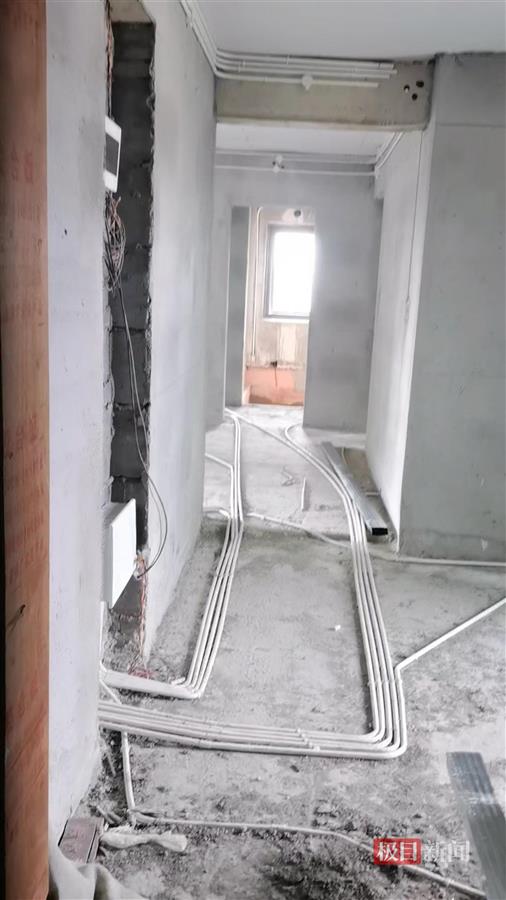 让章女士没有想到的是,签下合同后,项目施工进度却没有她预料中的那么顺利,反而异常缓慢,每次过来也能看到有人施工,但室内精装修施工迟迟没有动静。今年6月,许多业主觉得不对劲,在业主群质疑施工进展,甚至还有已经交了定金的购房者表示担忧提出退房。面对业主的质疑,开发商给出了施工时间表,承诺当月装修进场,但此后推迟到7月,又推迟到8月,直到本月,室内装修也只铺设了一些管线。