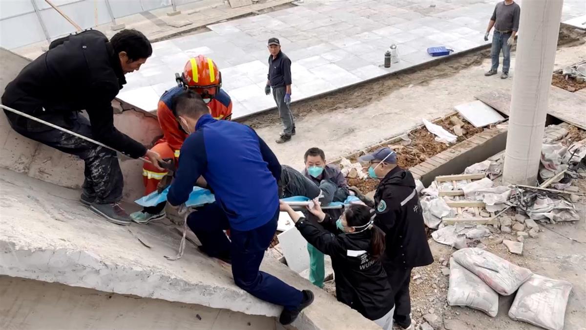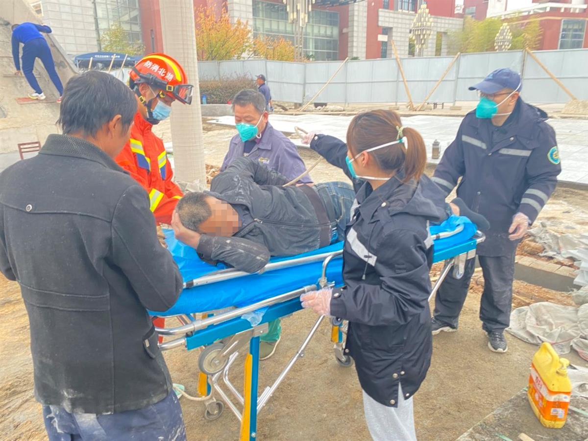 11月18日,武汉市江夏区一在建工地,一名工人在作业时不慎摔伤,武汉消防紧急调派江夏区流芳站消防员紧急救援。