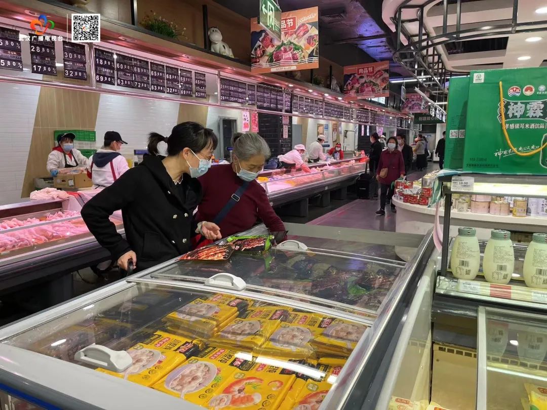 11月20日晚上8:00,记者来到中商徐东平价广场店看到,超市内蔬菜、米面粮油以及肉类货品种类丰富,市民朋友在店内有序选购。