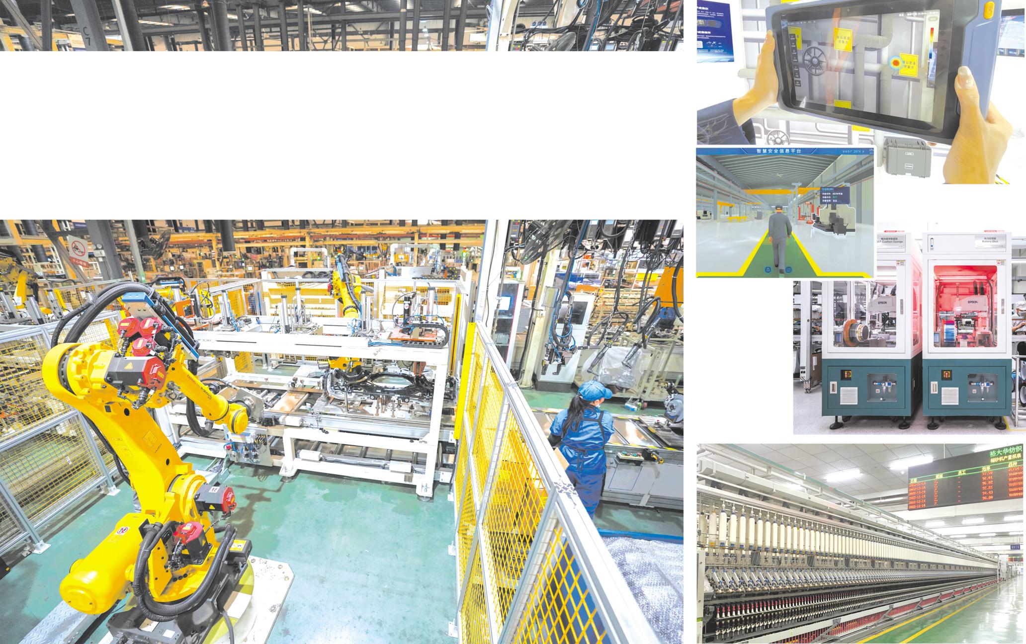 在汽车工厂,机器人实现100%自动化焊接零部件;在“地铁4S店”,虚拟检查员在工作人员控制下模拟检测、维修、调试设备;在手机厂房,量子线让每条组装生产线变得“聪明”;在纺织车间,智能调配实现纱锭自动退管、换卷、接头……