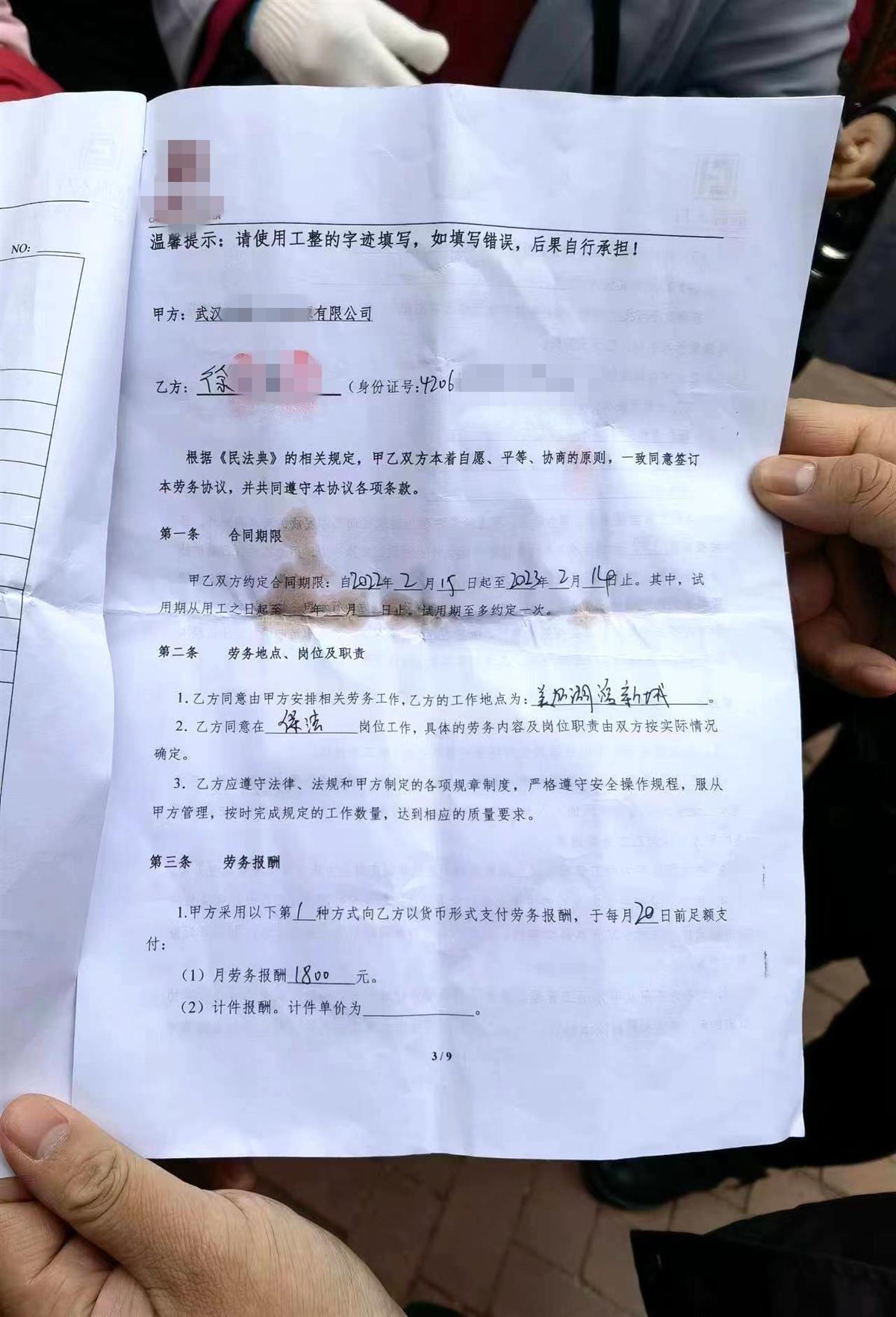 记者找到小区保洁代表王女士(化姓)。她介绍,自己今年上半年过来上班,连她在内有几十名保洁,其中大多数是小区里50岁以上的女性业主或业主的母亲。他们跟一家叫辰晖人力资源的劳务公司签了劳务协议,接受武汉其图物业的管理。她也被欠薪。