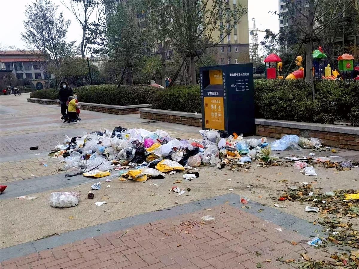 居民华女士告诉记者,这个现象从昨天就有了。她从在小区做保洁的邻居那里得知,可能是保洁的劳务费被拖欠了数月,因此保洁员到11月底后,就停止服务了。