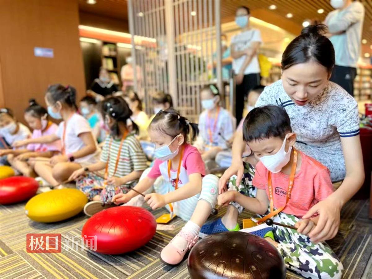 7月31日,光谷书房·未来科技城分馆举办空灵鼓亲子体验活动