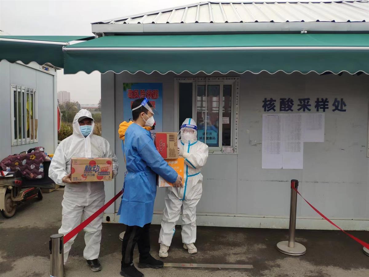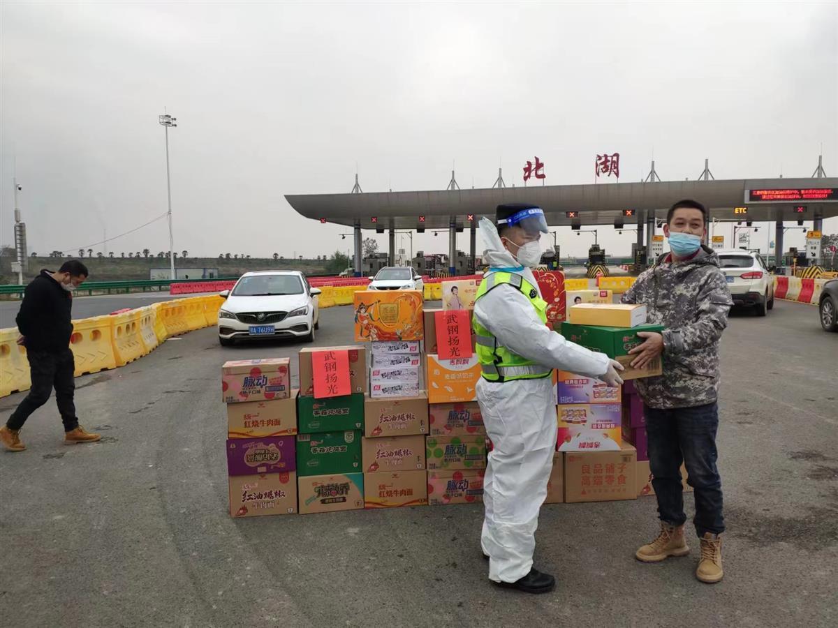 12月6日,武汉市青山区4家企业给坚守在四环线北湖收费站的疫情防控人员捐赠了一批抗寒物资,让严冬中守护市民健康安全的城管、交警、公安以及志愿者备感暖心。