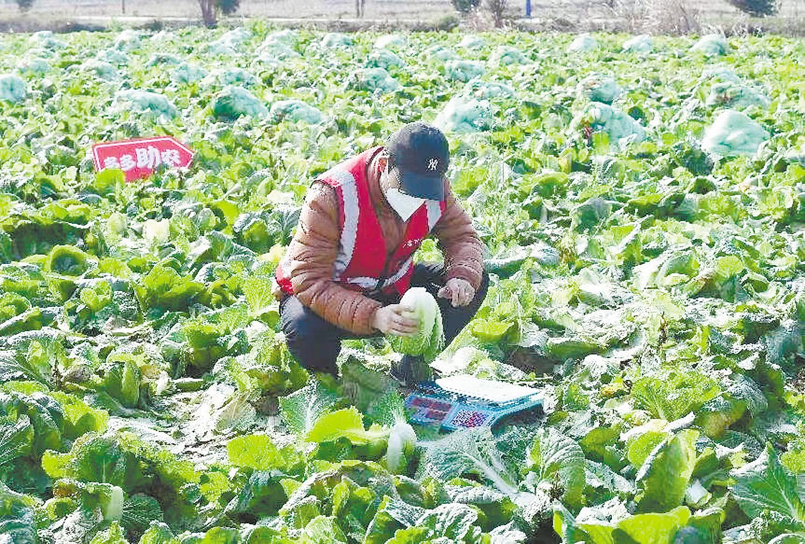 在余国启的娃娃菜基地,曹磊录制了现场采收视频,发在了朋友圈,“我要号召有实力的采购商同行一起助农,让这个冬天更加温暖。”