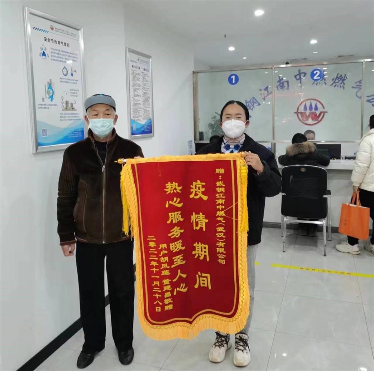 12月23日,武汉市民董先生将一面锦旗送到武钢江南中燃燃气公司白沙洲客服中心,感谢工作人员的贴心服务。对方表示:“这只是一件小事,是我们应该做的。”