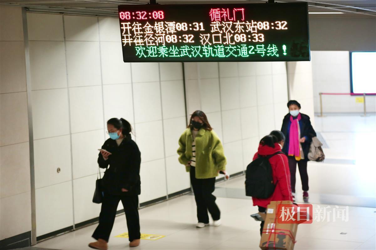 “开往金银潭8:31,武汉东站8:32;开往径河8:32,汉口北8:33。”记者在2号线出入口的电子屏上,不但看到2号线两个方向列车的到站时间,还可以看到1号线本站两个方向的到站时间,方便乘客掌握时间,从容换乘。