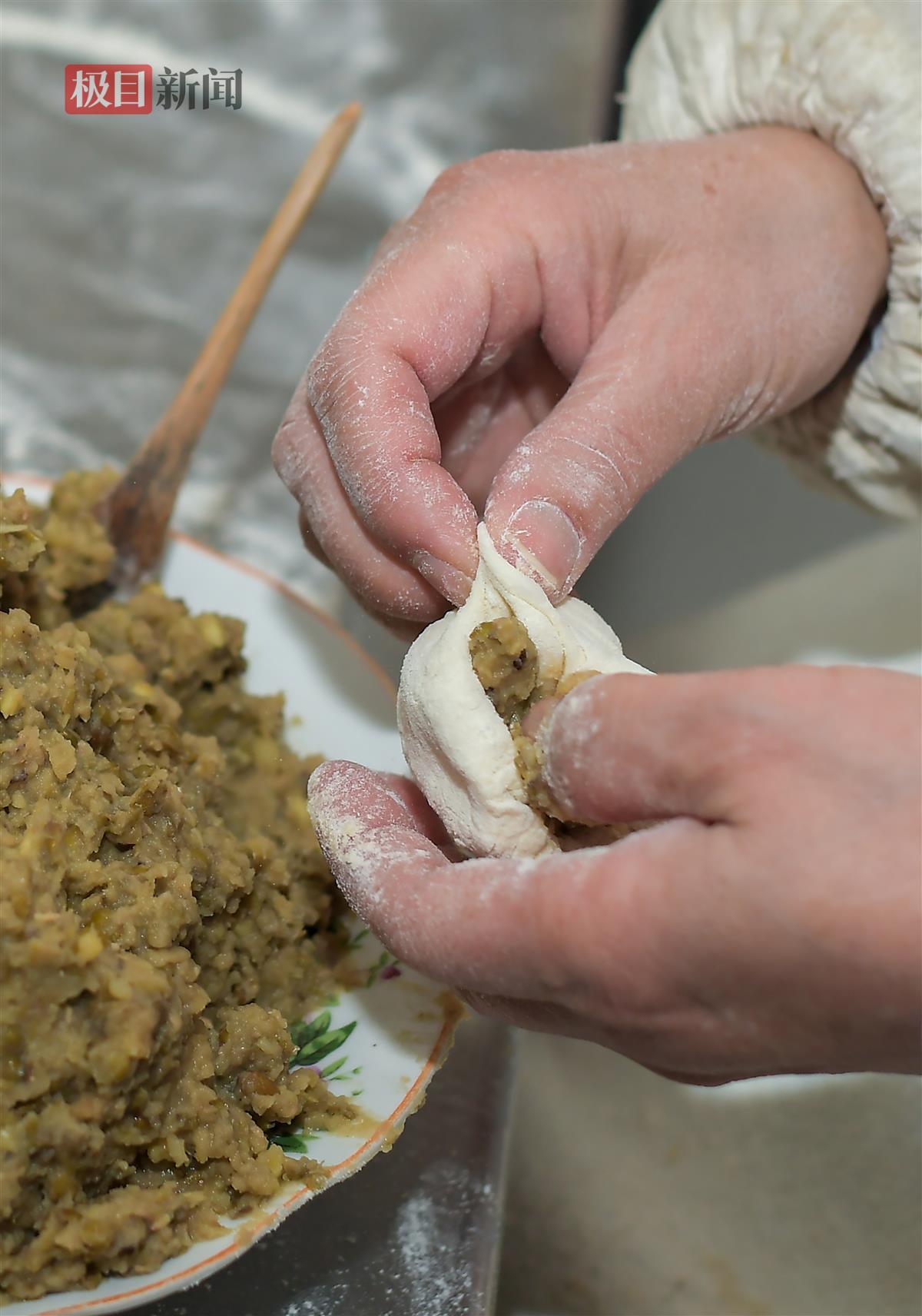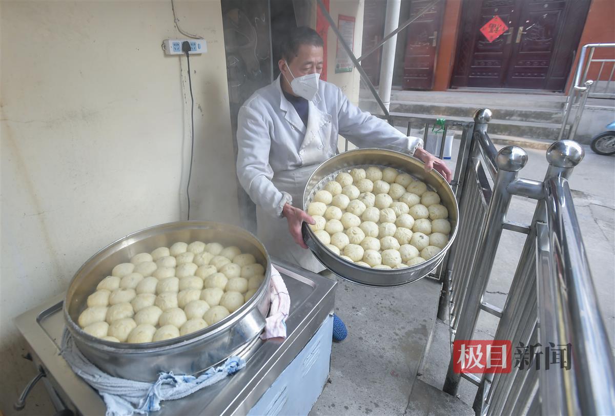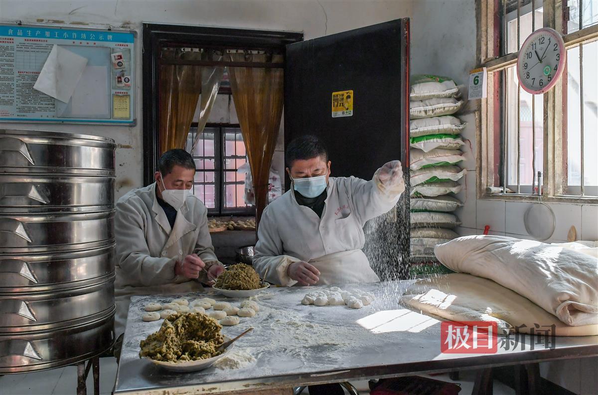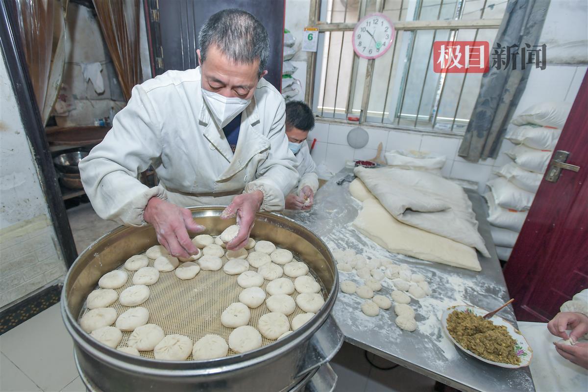 “老板,家里过年要300个包子!”“没有,没有,最多给你200个。”明明正在和顾客说着话,冯啟彪和妻子陈金玉仍头也不抬地包着包子,可就算老两口一刻不停地制作,一天的产量也不能满足所有顾客的需求。这供不应求的包子来自武汉市蔡甸区大集街道一家传承了150年的老店——冯氏绿豆包子,因为多年不变的独特风味,即使店处深巷,不论是经常来买的老街坊,还是慕名而来的新客,它门口的顾客总是络绎不绝,临近新年,生意更加红火了起来。