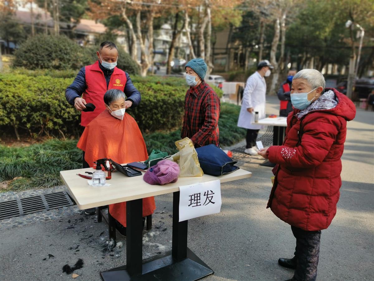 除了年货区外,便民集市区也是人头攒动,磨刀的、剪头发的、修伞的、修鞋的、冲洗地毯的……一个个接地气的便民服务项目,赢得居民点赞。