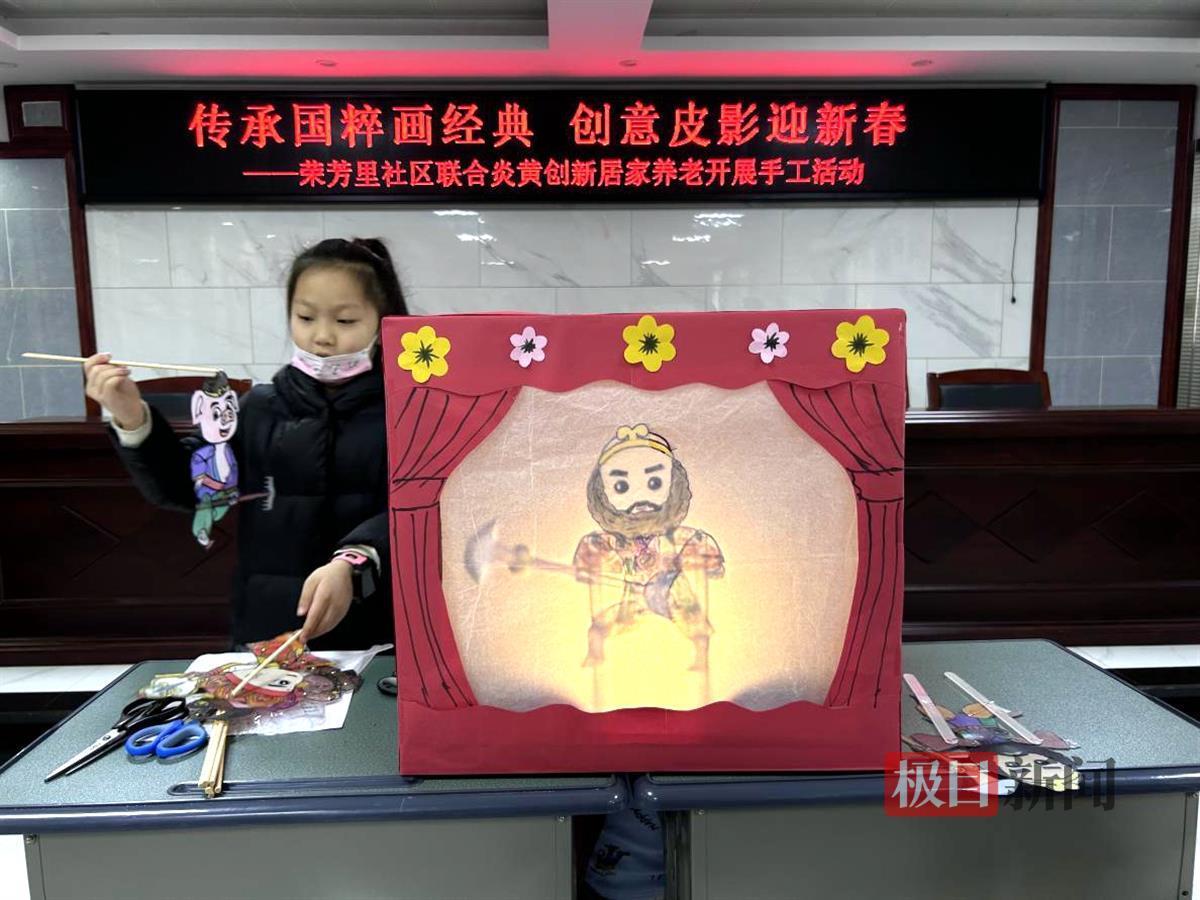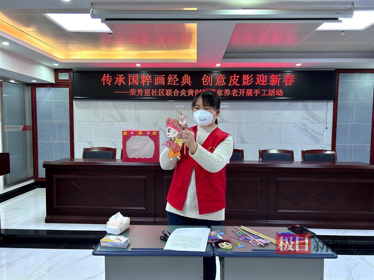 在新年即将来临之际,为丰富辖区居民的精神文化生活,1月12日上午,武汉东湖高新区九峰街荣芳里社区联合炎黄创居家养老服务中心,开展了“传承国粹画经典,创意皮影迎新春”皮影手工互动活动,吸引数十位居民参与体验。