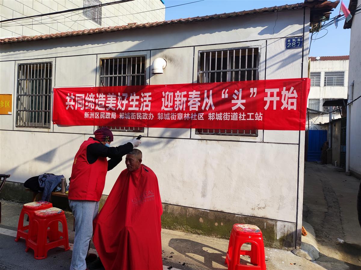 理了发好过年,是传统民俗,为了弘扬敬老爱老的优良传统,让老人清爽迎新年,1月11日下午,在武汉市新洲区民政局和邾城街民政办组织下,邾城街道社工站联合章林社区居家养老服务中心,开展了“共同缔造美好生活,迎新春从‘头’开始”的志愿服务活动,为章林社区老年人免费理发。