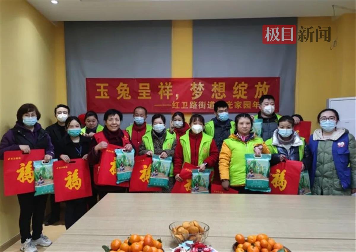为迎接“兔年”的到来,青山区红卫路街道残联、明霞助残工作室、阳光家园共同举办的“玉兔呈祥,梦想绽放”主题活动,在八大家花园社区新时代文明实践站开展。来自阳光家园的残疾人、武汉爱熙社工志愿者、残联工作人员参加。