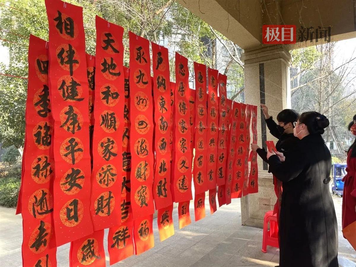 活动现场年味十足,人人脸上洋溢着喜悦的笑容,大家一边欣赏书法作品,一边将新春祝福、清廉文化、科普知识等精神粮食“收入囊中”。本次活动共题写了百余副春联,社区把满载兔年祝福和美好心愿的新春对联免费送给社区居民,为他们送去欢乐和吉祥。