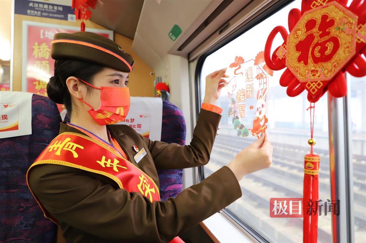 为确保旅客平安、有序、温馨出行,幸福回家团圆过年,武汉客运段还精心筹划、提前准备,各次列车加强乘降组织、安全提醒,优化服务举措、美化车厢环境,开展了形式多样的迎新年活动,营造出浓厚的新年氛围。