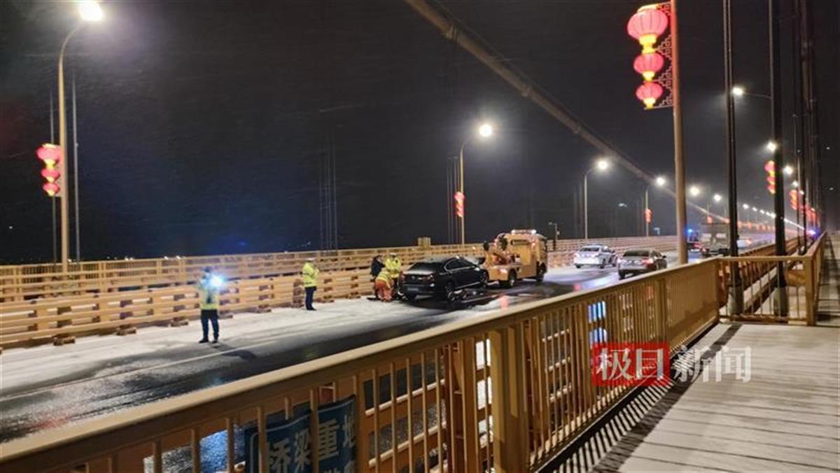 现场的一位交警告诉记者,桥上并未发生严重的交通事故,现场的事故很快就能处理完毕,“在武汉下起第一片雪花时,我们交警就行动了起来,一系列雨雪天保障交通安全的应急措施正在进行之中。”
