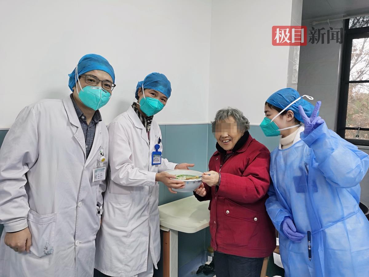 医护人员给王婆婆送餐