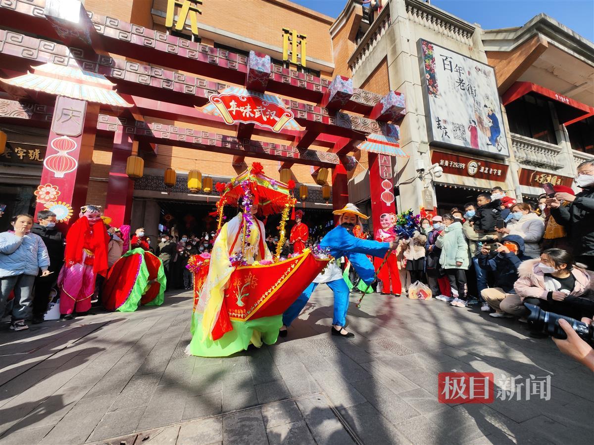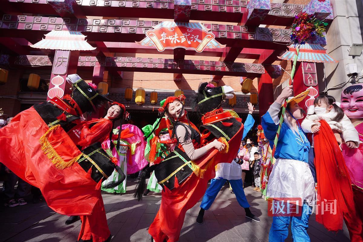 作为2023“年味武汉”迎春民俗文化活动之一,游客们除了可以欣赏到精彩多样的民俗活动表演,还能近距离感受非物质文化遗产的魅力。