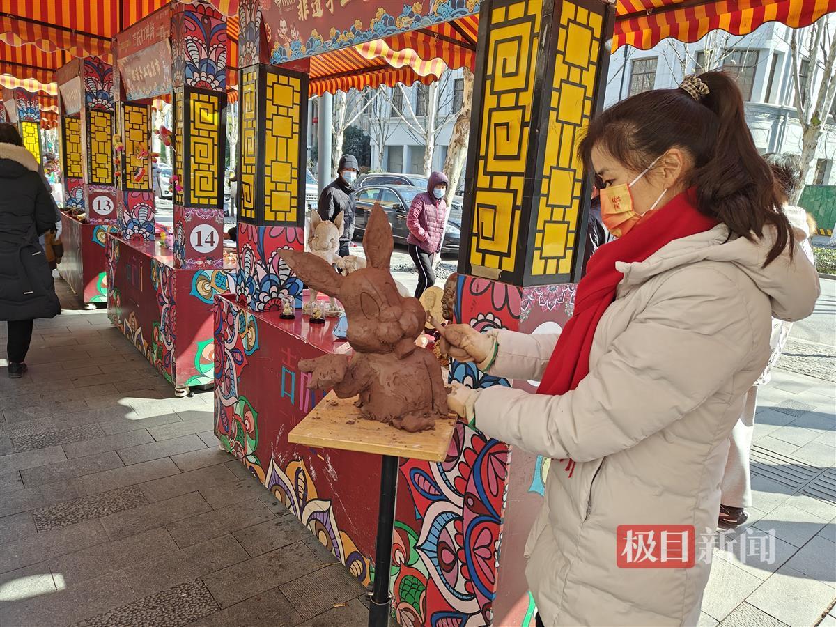 惟妙惟肖的泥塑、应景的小兔子吹糖、栩栩如生的剪纸……在琳琅满目的非遗项目中,游客们应接不暇,纷纷带着孩子选择心仪的项目体验。