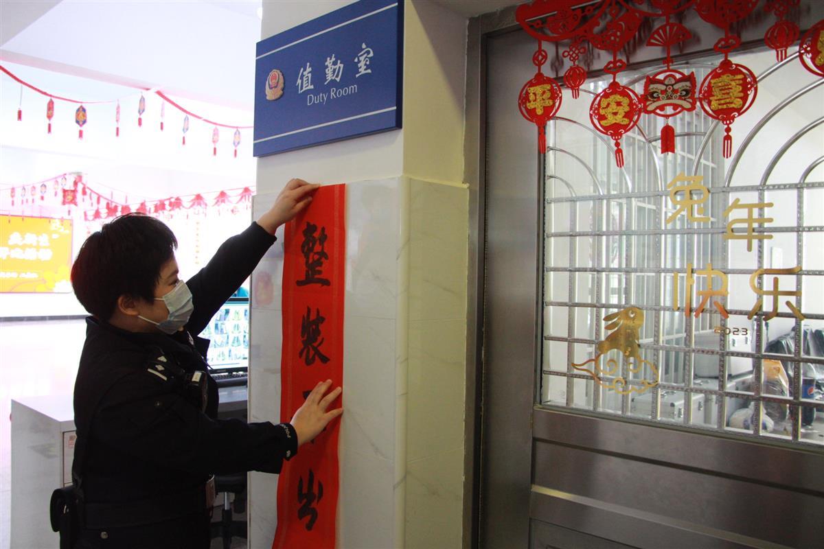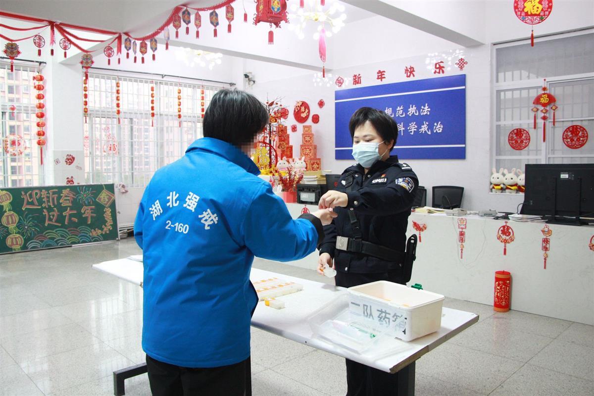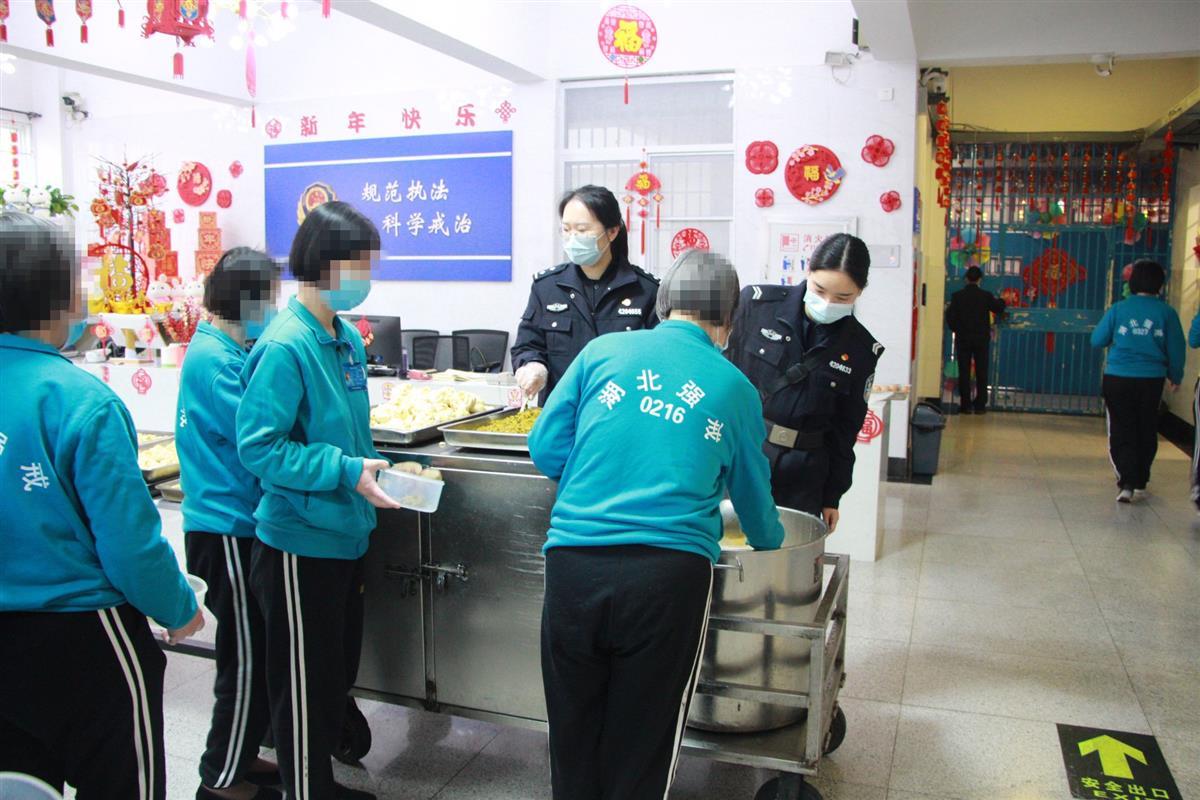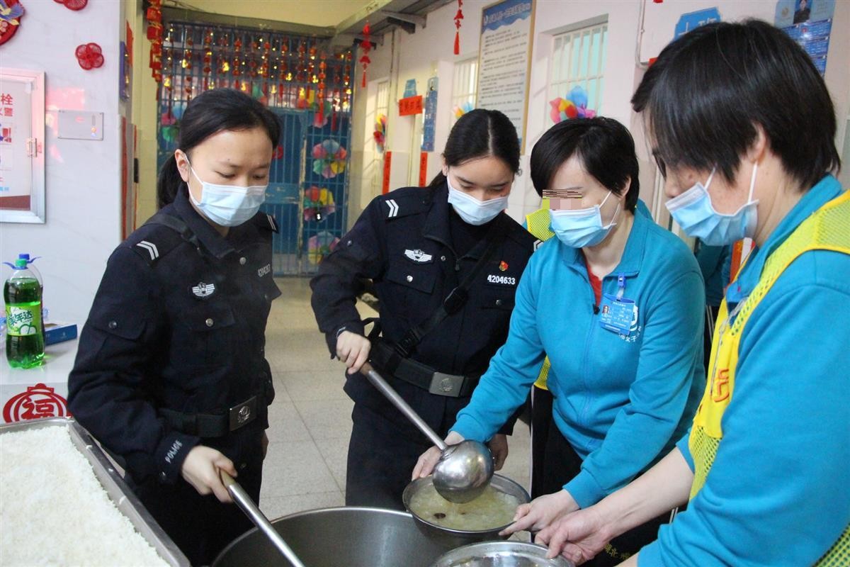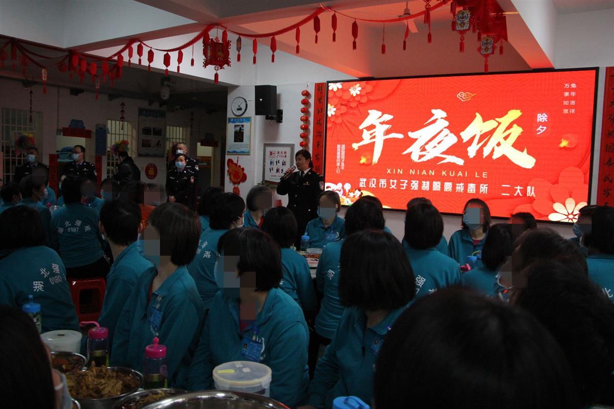 16:30,武汉市司法局女子强制隔离戒毒所党委书记、所长杨毅青及机关值守民警也来慰问戒毒所值班民警和全体戒毒人员,大家喊着祝福的吉祥话,期待新年新气象。