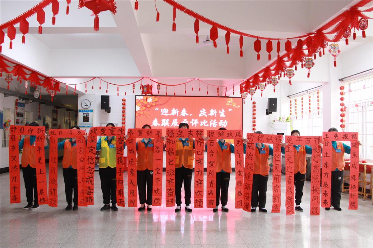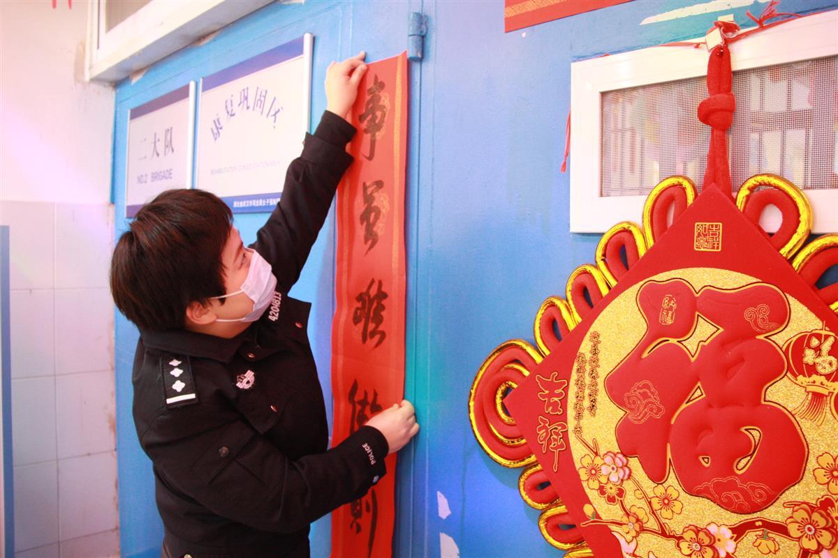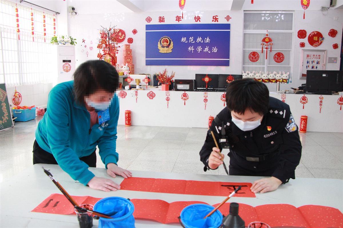 9:00,在做完大扫除后,万梦盈开始带领戒毒人员写春联。喜气洋洋的“玉兔报福”、信念坚毅的“蜕变重生”、满心期待的“前程似锦”……都寄托着戒毒人员们对新的一年和新的生活的期盼。