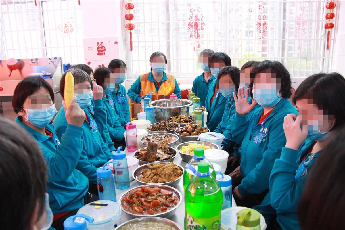 15:30,戒毒人员的年夜饭开始陆陆续续送到生活区。民警将香气扑鼻的美味佳肴分装在每个班的餐具中。