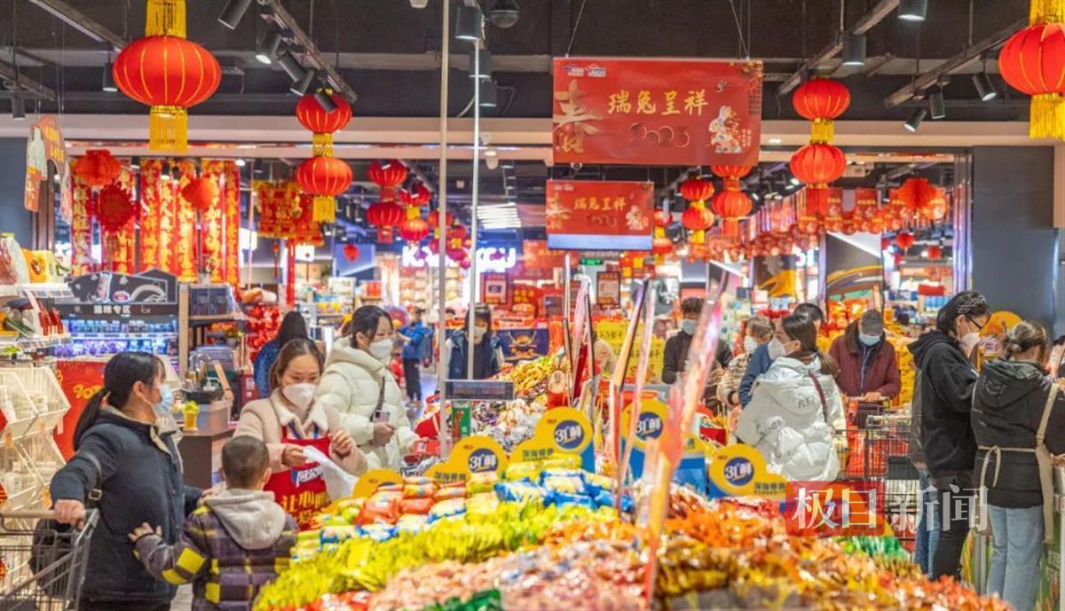 春节期间,武汉经开区惠民促销活动精彩纷呈,大众商品货丰价稳,市民消费需求旺盛,节日消费氛围浓厚,全区消费市场供需两旺。