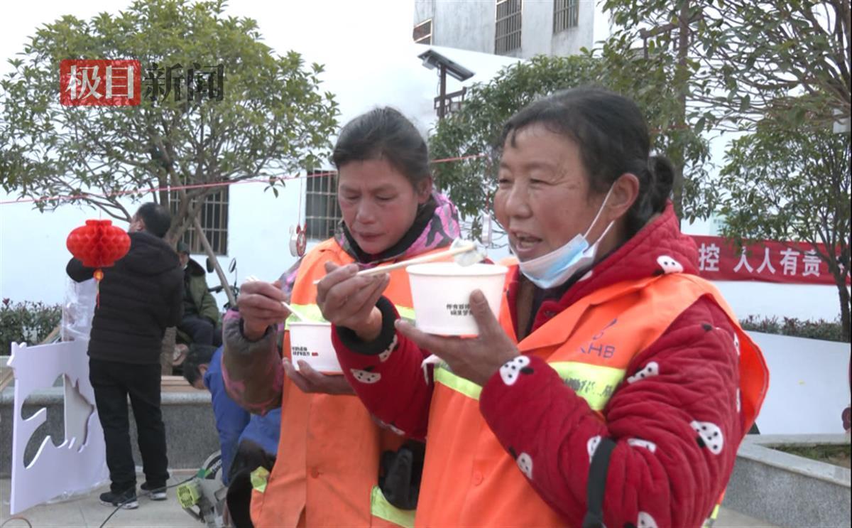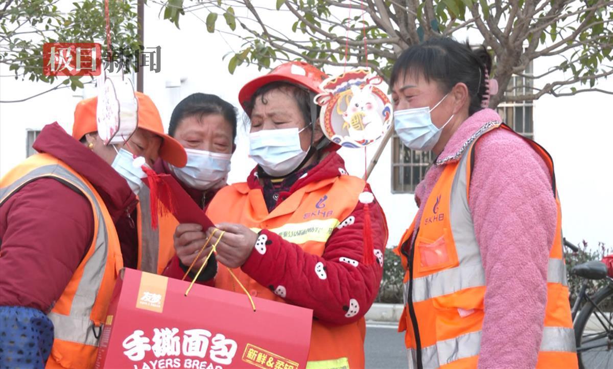 “我今天吃了八个汤圆,感到很开心,心里都是甜的。”接过汤圆的环卫工人罗阿姨微笑着说道。