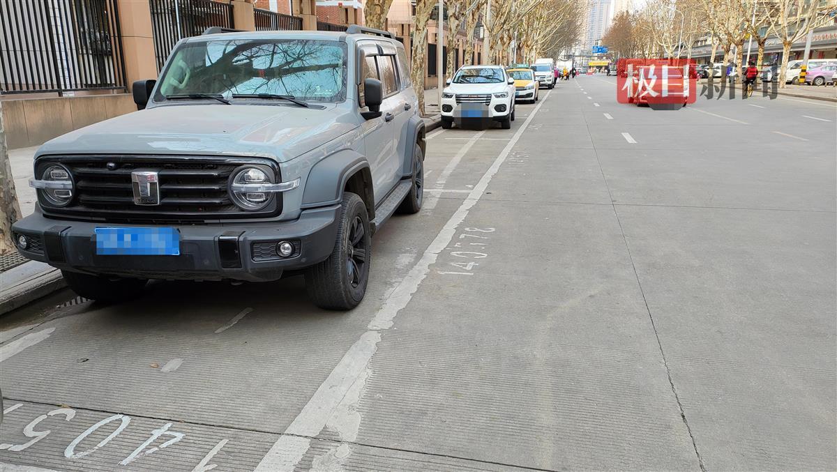 记者和张先生一同在解放大道和韦桑路交界处找到了不收取停车费的新能源车充电车位,虽然同在韦桑路,但这里的泊位确实是用黄色的线画出来的,与其余用白线画出的普通泊位存在差异。