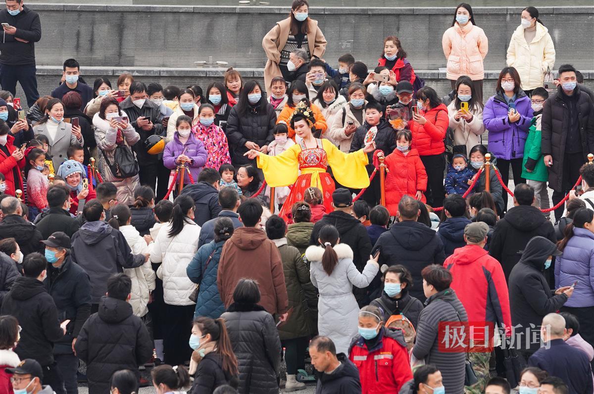 极目新闻记者看到,在表演过程中,“不倒翁小姐姐”衣袂飘飘,乌发如云,巧笑倩兮,美目盼兮,似从天外飞来,柔荑轻触,转瞬飘然而去。