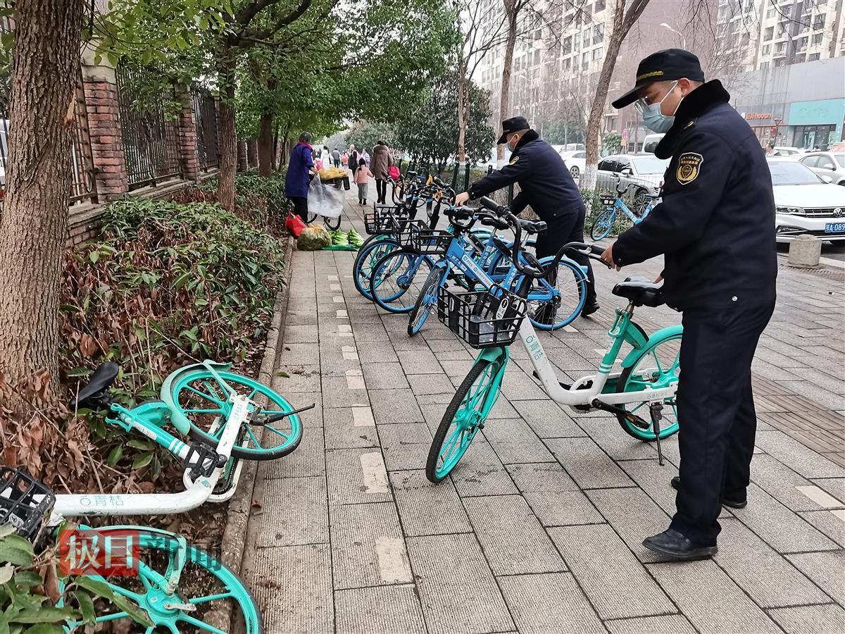 2月6日早上7时,东湖高新区佛祖岭街城管执法二中队队员彭鹏和同事一起,来到了光谷十五小周边开展巡查。看到路边有一位老人在摆摊卖菜,城管队员立即走上前去劝离。随后,将附近停在路边的共享单车有序摆放在停车线内。当天早上,三名城管队员和四名环卫工人在校园周边流动巡查,确保环境秩序井然。