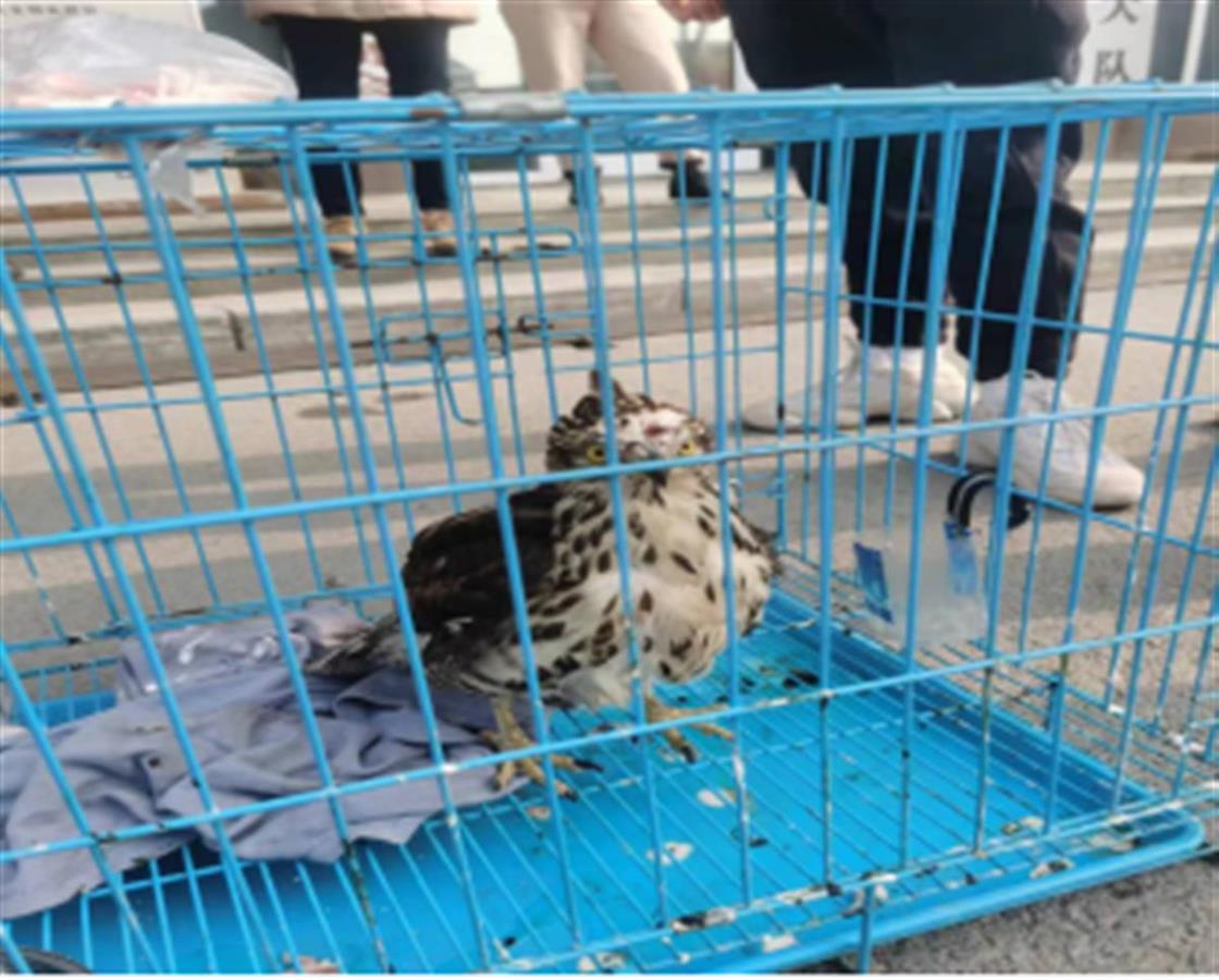 随后,大队工作人员将这只受伤的雏鹰带回大队工作站,并及时联系辖区林长办公室,报自然规划局对鹰进行鉴定。经鉴定,雏鹰的种类属凤头鹰,属于国家重点保护动物。目前。这只雏鹰已被送往相关部门进行救治。