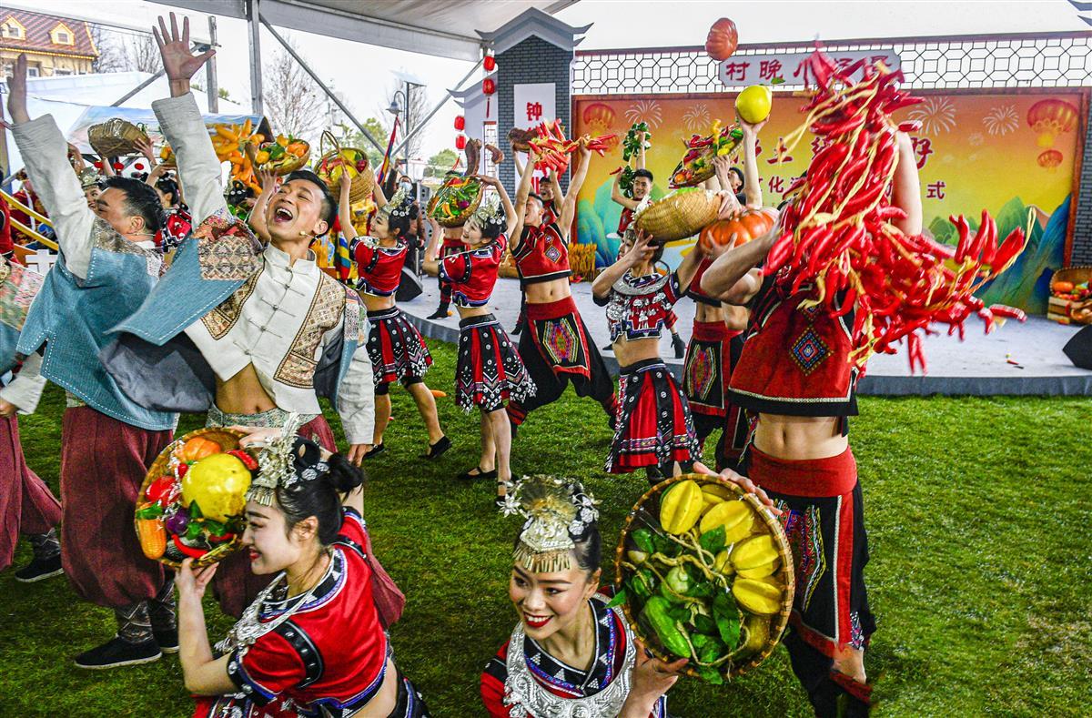淅淅沥沥的春雨中,一曲欢快热闹的《舞起来》,拉开启动仪式的大幕。极目新闻记者现场了解到,此次全国乡村文化活动年活动,将采取“主体活动+系列活动”形式,组织举办“四季村晚”“农业文化遗产里的中国”文化展示、“一县一品”特色文化典型案例征集、全国广场舞展演、全国优秀群众文艺作品巡演、“乡村四时好风光”全国乡村旅游精品线路遴选推广、“中国民间文化艺术之乡”交流展示等12项主体活动,以及第九届中国农民歌会、湖北乡村文化旅游节等80项示范性系列活动。