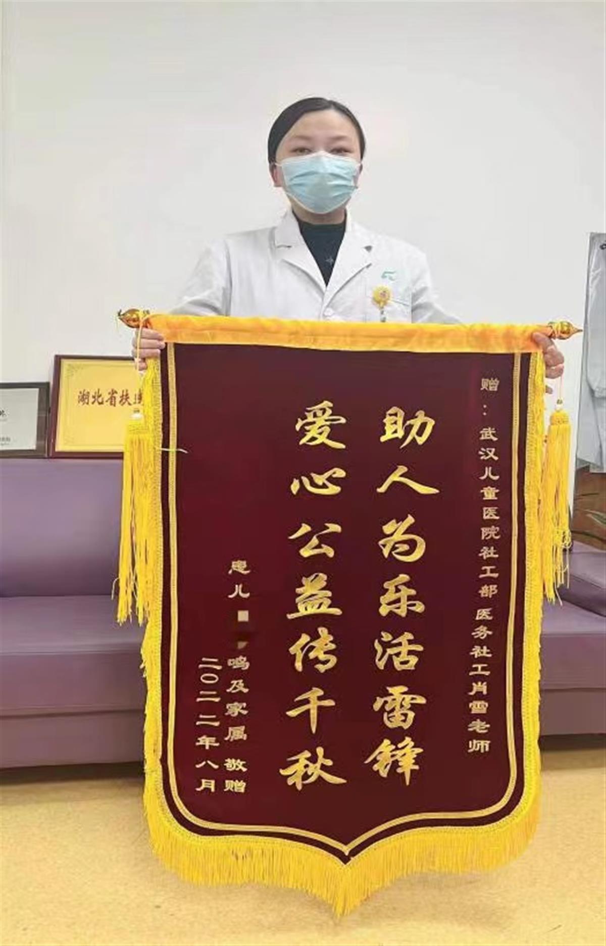 小鸣的家人向医务社工送来锦旗(受访者供图)