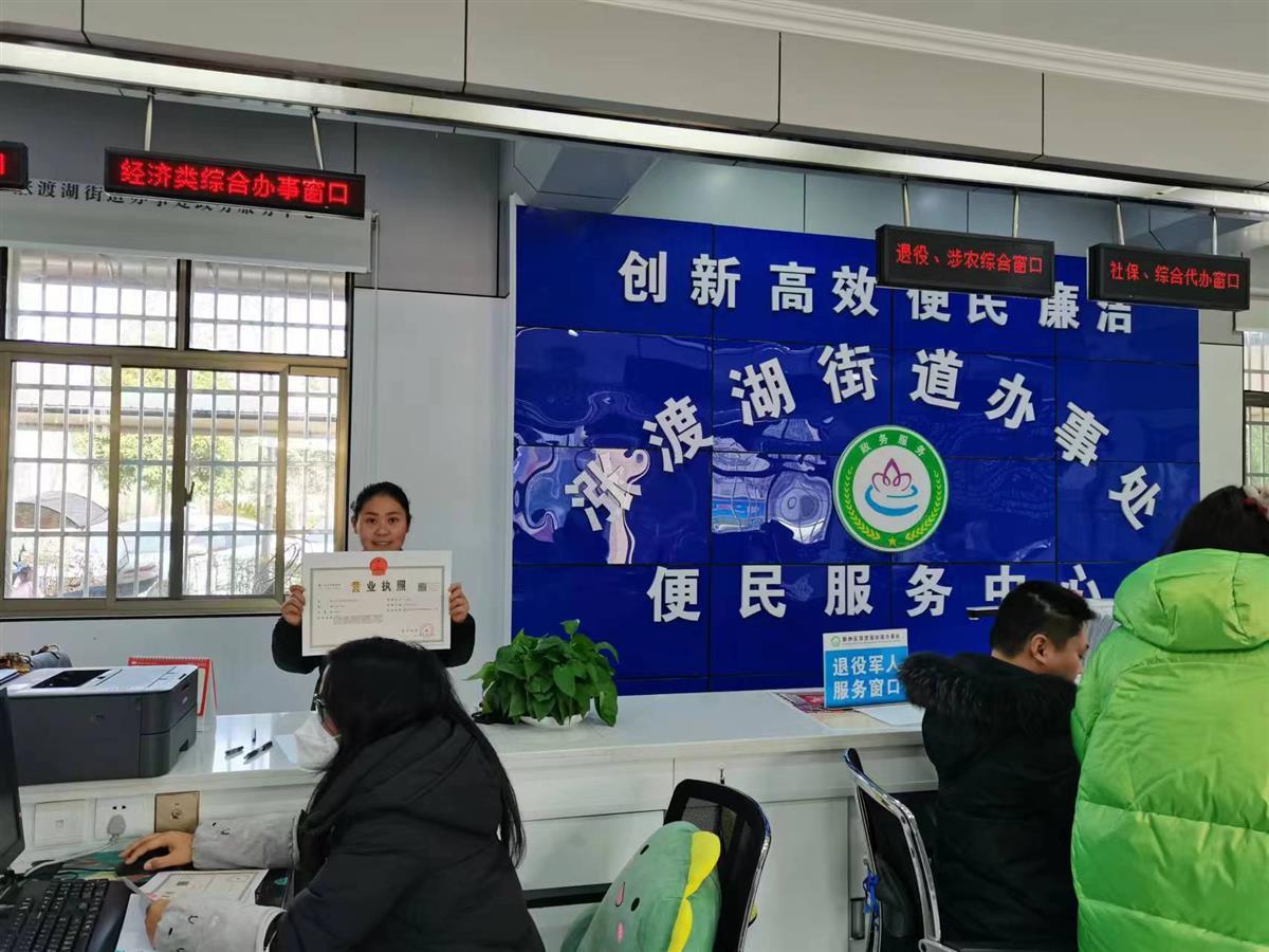 据了解,余女士目前在涨渡湖街农场做木材生意,想办理木材经营营业执照,但是原户籍地在汪集街,平时太忙没有时间回去办理,当天抱着试一试的心态来到涨渡湖街便民服务中心了解情况,窗口的工作人员听了余女士的诉求后,详细地向她讲解了政务服务“异地通办”的相关内容,并在半个小时左右就为她办理好了营业执照。