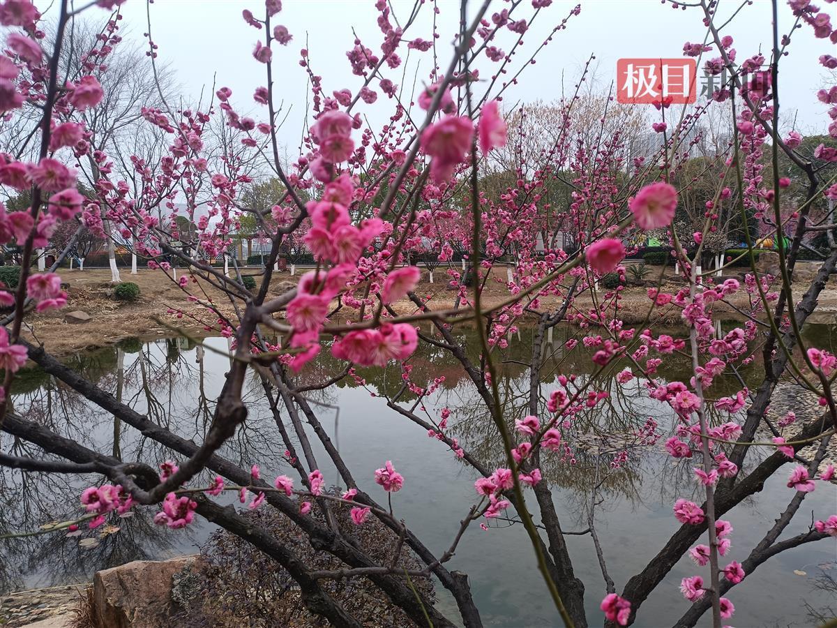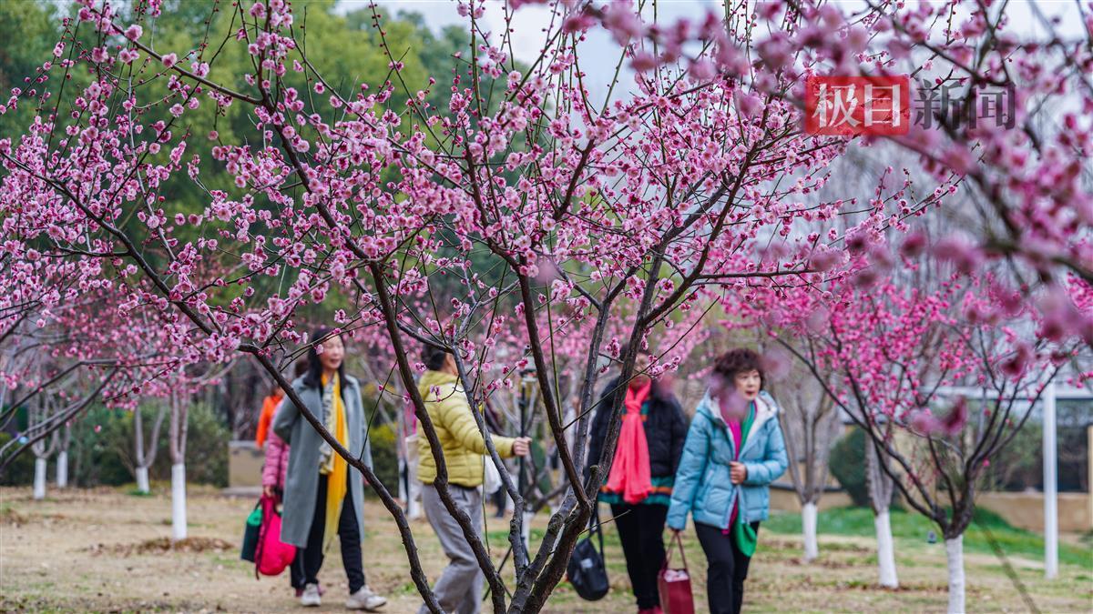 被小区环抱的洪山南湖幸福湾公园,百棵红梅倾情绽放,引来游客拍照,游客中大多是附近居民,该园管理处陈琳说:“居民在家门口就能欣赏‘疏影横斜水清浅’的美好。”