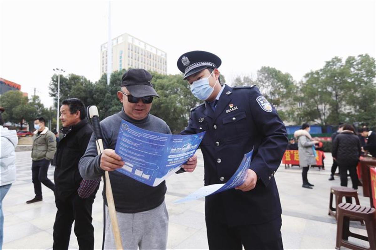 “爹爹您好,电信诈骗骗术五花八门,您可要提高警惕呀!”活动现场,横店派出所青年民警吴秋虹、胡忠曦拿着反诈宣传单,热情地向一位大爷介绍:“宣传单上面有各类常见骗术和防诈骗小知识,您和家人多加防范,一定要保护好自己的养老钱!”这位大爷笑呵呵地说:“这个我知道,凡是要求转账的都是诈骗!大喇叭天天都在播放,你们警察反诈工作做得好!”