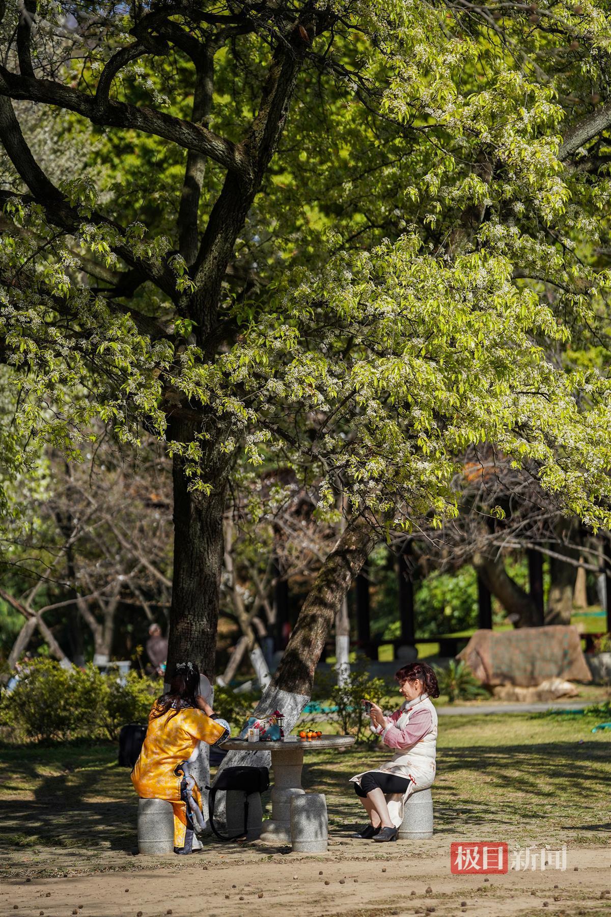 家住青山区的张婆婆今天特意换上了一条红色的裙子,和家住武昌区的王婆婆相约前来青山公园拍照留念,“是慕名而来想拍照打卡55岁梨花树的,但没想到来了之后已经进入花期尾声了,好在公园里的其他花也都陆续开了,也算是没有白来一趟。”