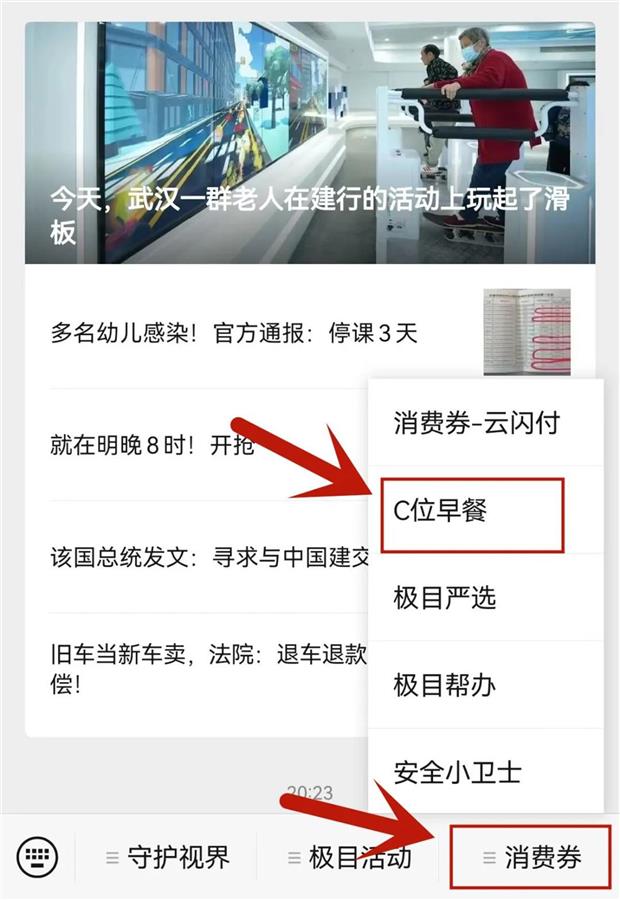 进入“极目新闻”微信公众号,点击底栏【消费券】-【C位早餐】,即可进入专题页面,为您支持的早餐投票。