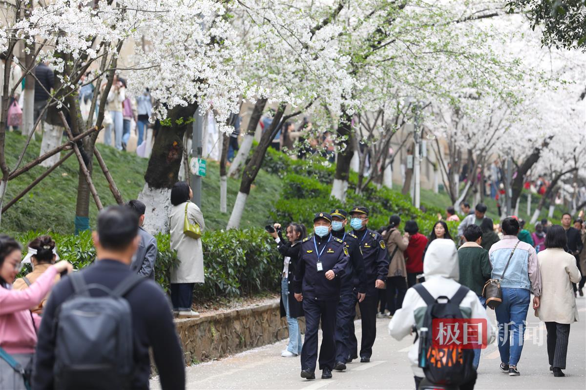 珞珈山街道办事处副主任王瑞民介绍,武大樱花节期间执法中心执法队员全员上岗,进驻武大校园,联合武昌城管执法大队、武汉大学校园管理中心、保卫部等部门,形成“武大樱花节”市容环境保障服务合力。校内校外巡查力度同步提升,营造安全、文明、和谐的赏樱环境,通过大型活动锻炼队伍,提升城市精细化管理水平。